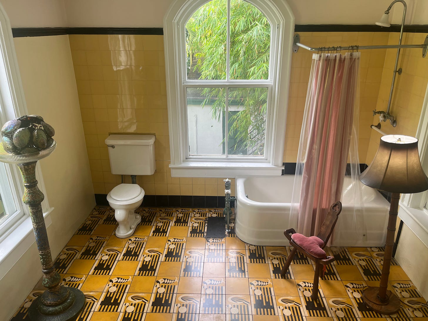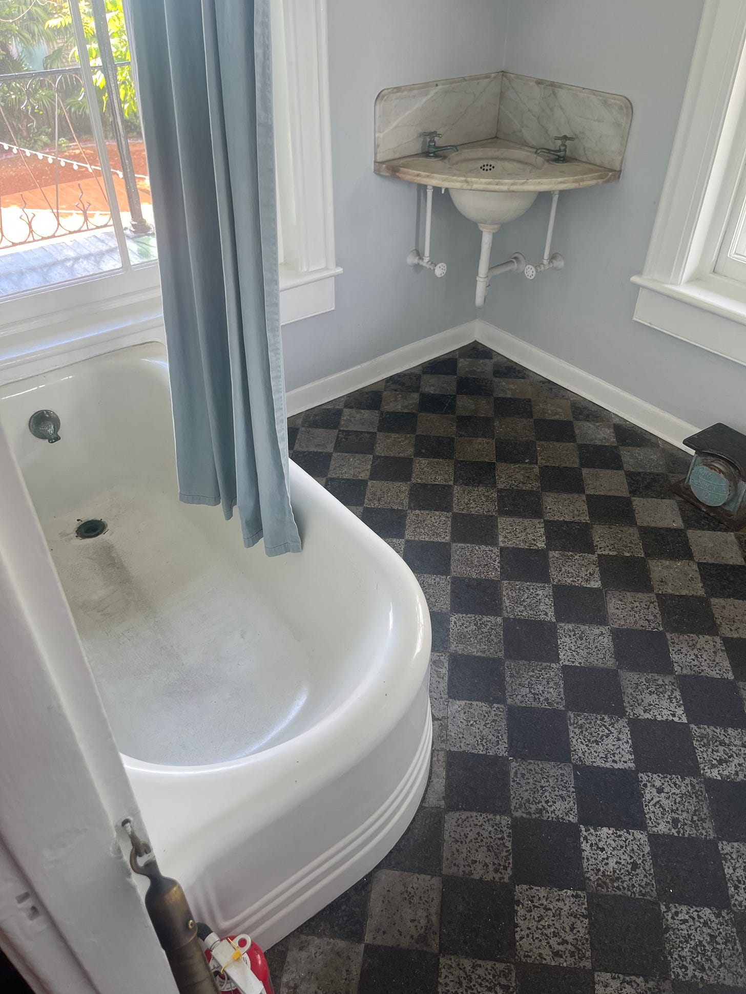 Apparently Stevens and Hemingway had a scuffle here and Hemingway knocked him out. It’s hard for me to imagine a belligerent Wallace Stevens. But that he got into a fistfight in Key West makes me think that I should go out and drink one night before I leave. I have seriously soured on alcohol as I’ve gotten older but maybe it’s worth a hangover to see if any literary spirits come alive for me in drunkenness. James Merrill had a house here and of course Tennessee Williams did too — two more writers I loved in my teens and early 20s.